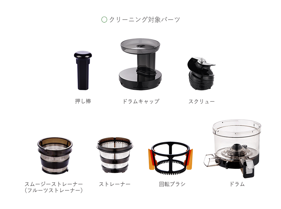 ヒューロムスロージューサーをご愛用のお客様を対象に、ドラムセットのクリーニングサービスを有償で承っております。