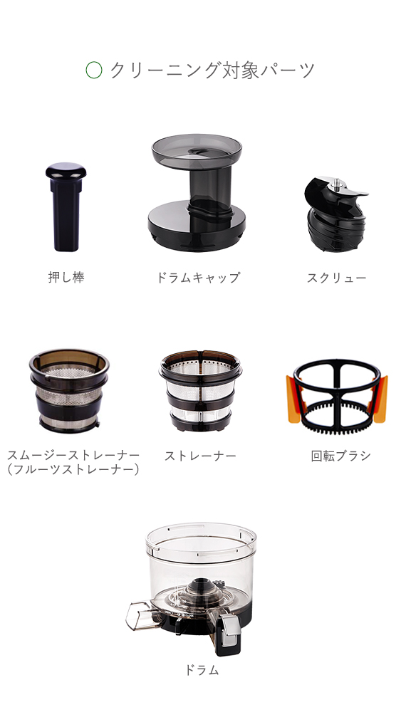 ヒューロムスロージューサーをご愛用のお客様を対象に、ドラムセットのクリーニングサービスを有償で承っております。
